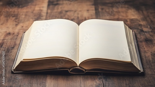 Open Book on Wooden Table: A Blank Canvas for Stories