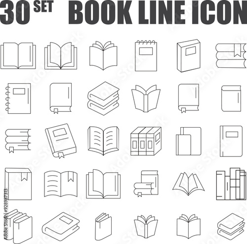 open book vector icon set. study text book pages symbol. brochure or flyer manual sign. library novel publication book icon set. in black and white color