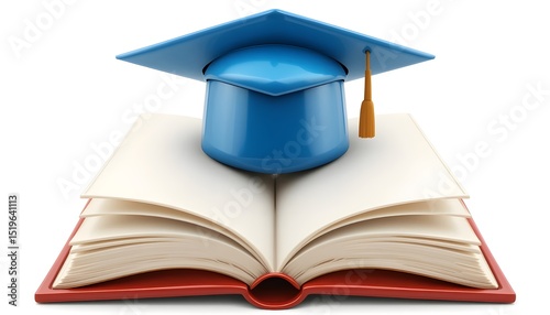 Open Book with Blue Graduation Cap - Education and Academic Achievement