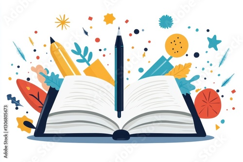Open Book with Colorful Elements for Learning and Creativity