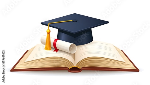 Open book with graduation cap and diploma