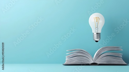 Open Book with Lightbulb in Paper Cut Style Representing Education and Learning