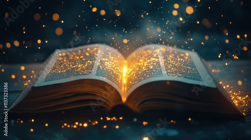 Open Book with Magic Glowing Light