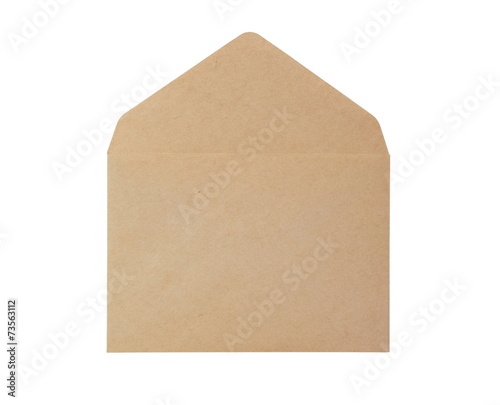 Open brown paper envelope isolated on white background