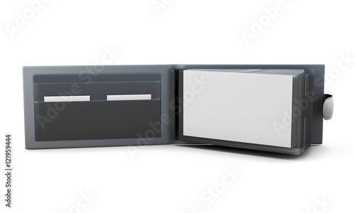 Open business card holder isolated on white background. 3d rende