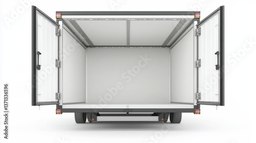 Open Empty Delivery Trailer with Rear Doors Ajar for Freight Transport