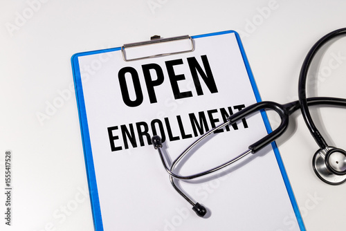 Open Enrollment Reminder on Medical Clipboard with Stethoscope – Healthcare Access Concept