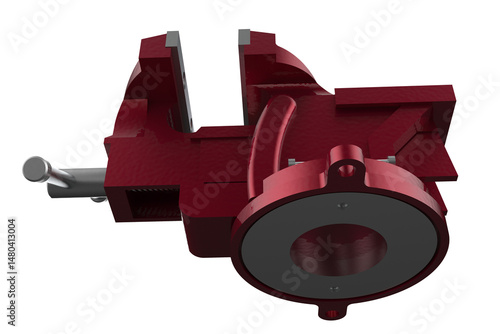 OPEN EXPAND Position, Multipurpose, Pipe Bench Vise, Table Pincers, Bench-Mounted, Red Vise, Securely Holding Materials, Various Tasks, Robust Metal Vise, Adjustable Jaws, Industrial Use, DIY Use, PNG