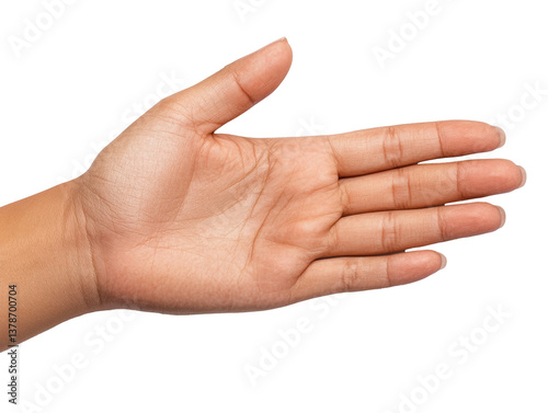 Open hand gesture symbolizing welcome and communication for design, cut out