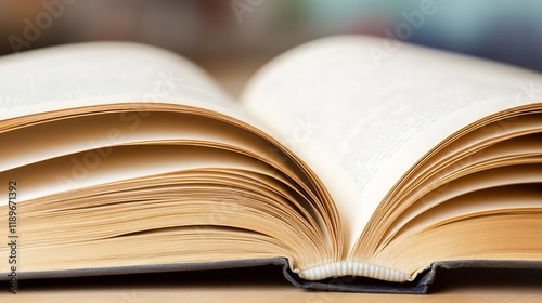 Open Hardcover Book with Pages Fanned Out on Gentle Background : Generative AI