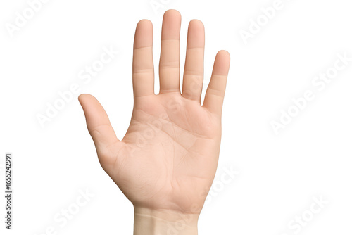 Open human palm, offering or stop gesture, isolated on transparent background