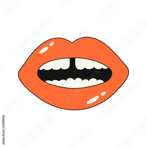 Open mouth icon. Teeth with a gap. Illustration of red lips isolated on a white background