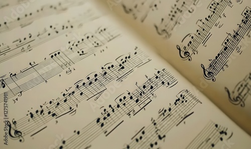 Open music book displays notes for musical performance and education