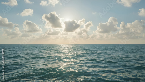 Open Ocean View with Sunlight Reflecting on Water Under Cloudy Skies