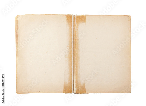 Open old blank book isolated on white with clipping path