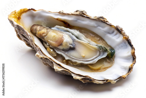 Open Oyster: A close-up shot of a fresh, raw oyster nestled in its shell, showcasing its pearly texture and savory appeal.