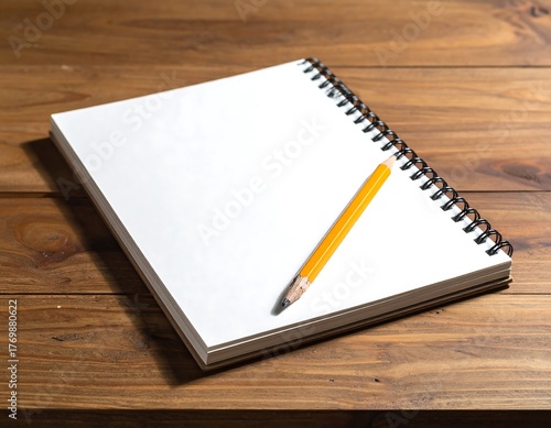 Open spiral-bound notebook with pencil on wooden table