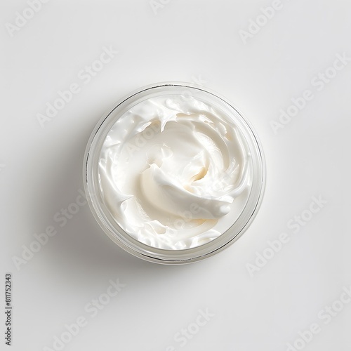 Open white plastic jar with white cream isolated on a white background