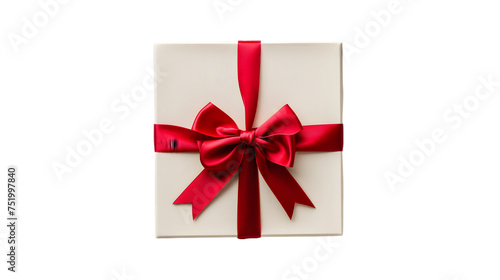 Open white present box or gift box with red ribbons and bow isolated on transparent background