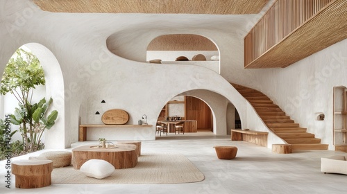 Open-concept modern home with natural elements