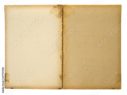 Opened first page of used book isolated on white