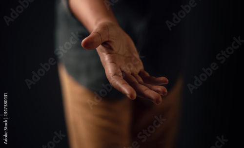 Opened Hand Giving Some Help. Young Man Offering a Helping Hand. Cropped and Selective Focus