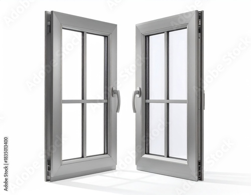 Opened window, silver frame, square panes, bright
