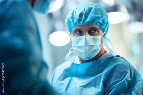 Operating room, surgical team led by a surgeon, health care procedure in a hospital