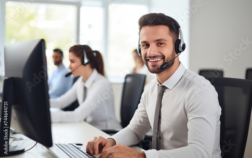 Operatore Call Center sorridente che lavora