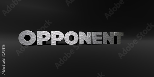 OPPONENT - hammered metal finish text on black studio - 3D rendered royalty free stock photo. This image can be used for an online website banner ad or a print postcard.