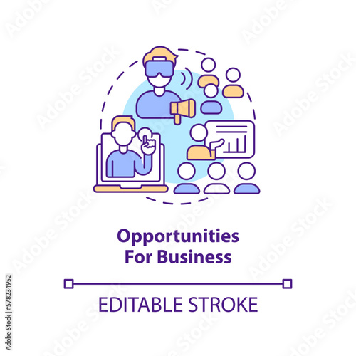 Opportunities for business concept icon. Metaverse importance for commerce abstract idea thin line illustration. Isolated outline drawing. Editable stroke. Arial, Myriad Pro-Bold fonts used