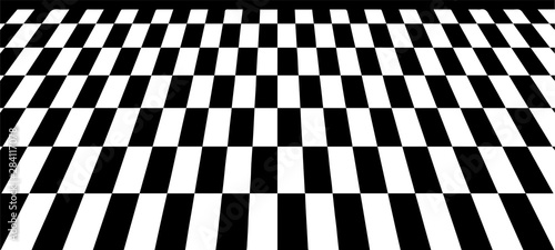 Optical illusion. Abstract 3d black and white background. Chess board.