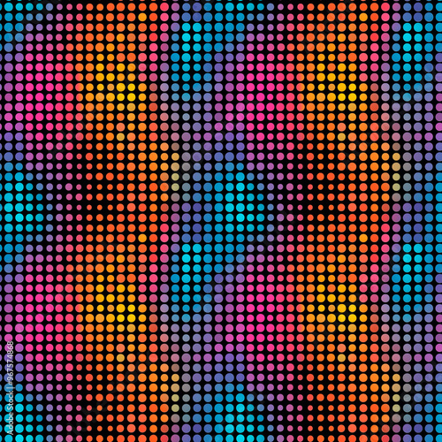 Optical illusion created with multi-colored dots. Seamless pattern.