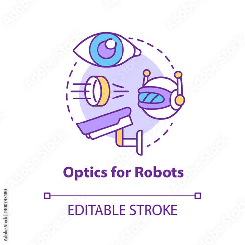 Optics for robots concept icon. Robotic lenses idea thin line illustration. Innovative cctv cameras. Special futuristic glass for electronics. Vector isolated outline drawing. Editable stroke..