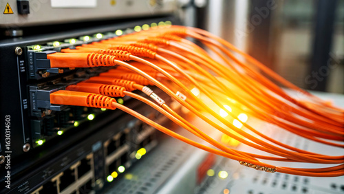 Optimizing Fiber Optic Network Performance Data Center Technical Installation High-Tech Environment Close-Up View Infrastructure Concept for Enhanced Connectivity
