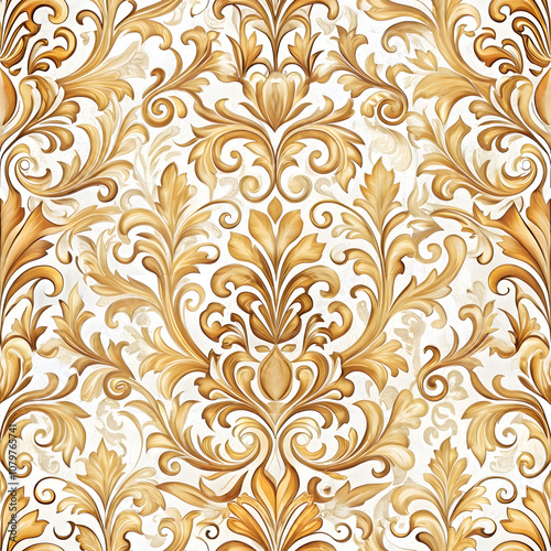 Opulent Baroque-Inspired Vintage Seamless Pattern in Gold and Ivory. Perfect for: Royal-themed events, opera sets, European art shows