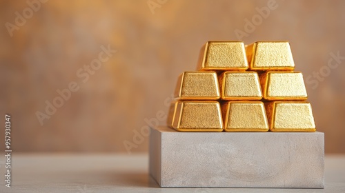 Opulent Gold Bullion Sculpture in Art Gallery Showcase with Copy Space, Selective Focus, Ultra HD