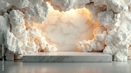 Opulent stone stage, luminous marble veins, 3D illustration