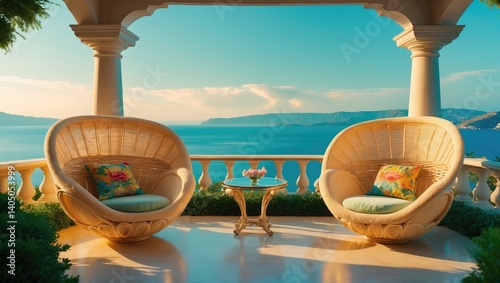 Opulent villa interior overlooking the sea