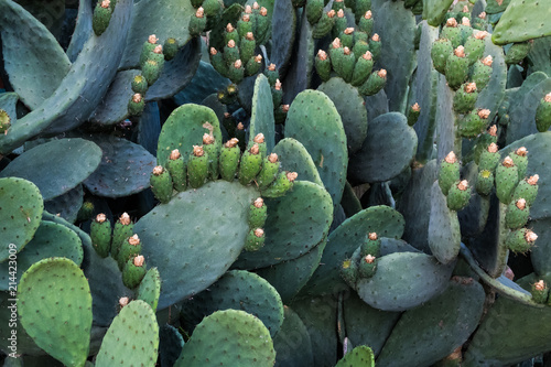 Opuntia ficus-indica is also known as Prickly Pear, Indian Fig or Mission Cactus. Nature wallpaper background.
