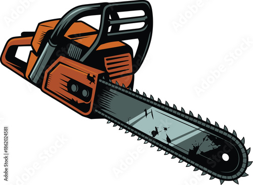 Orange and Black Vector Chainsaw Illustration with Sharp Teeth Perfect for Logging and Woodcutting Projects