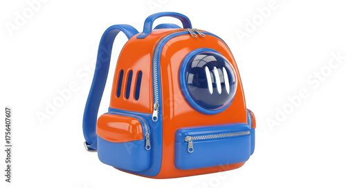 Orange and Blue Backpack with Bubble Window and Zippers.