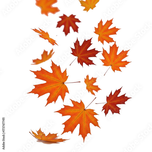 Orange and red autumn maple leaves falling, 3D illustration, white background