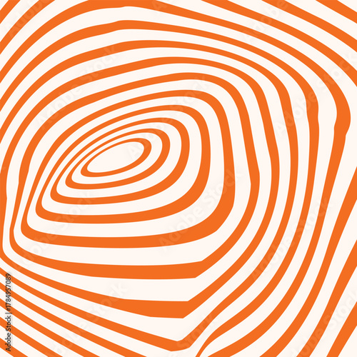 Orange and white concentric spiral creating dynamic optical illusion. Vibrant geometric pattern perfect for posters, branding, and energetic graphic design projects.