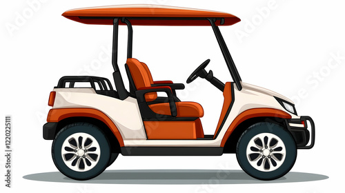 Orange and white golf cart on white background, for leisure travel and transport