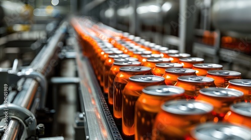 Orange Beverage Cans on a Modern Production Line