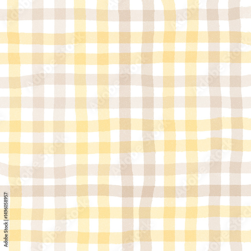 Orange Brown Beige Plaid Gingham Check Hand Drawn Background Pattern