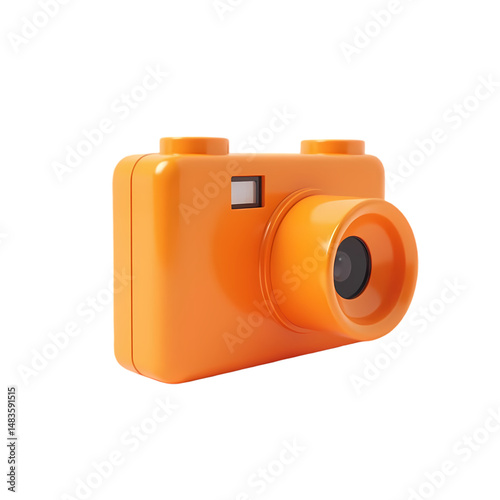 Orange Cartoon Camera 3D Render Icon isolated on transparent background