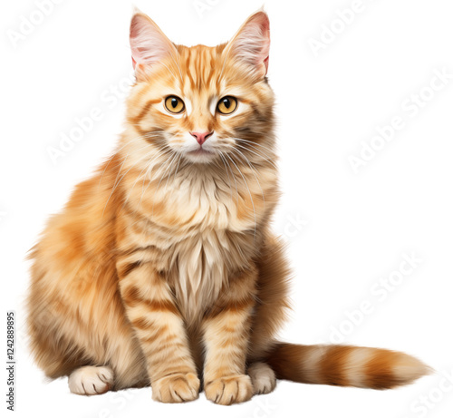 Orange cat isolated on transparent background. Generative ai