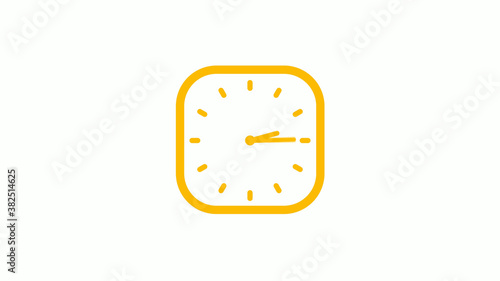 Orange color square clock icon on white background, Clock icon, Counting down clock icon